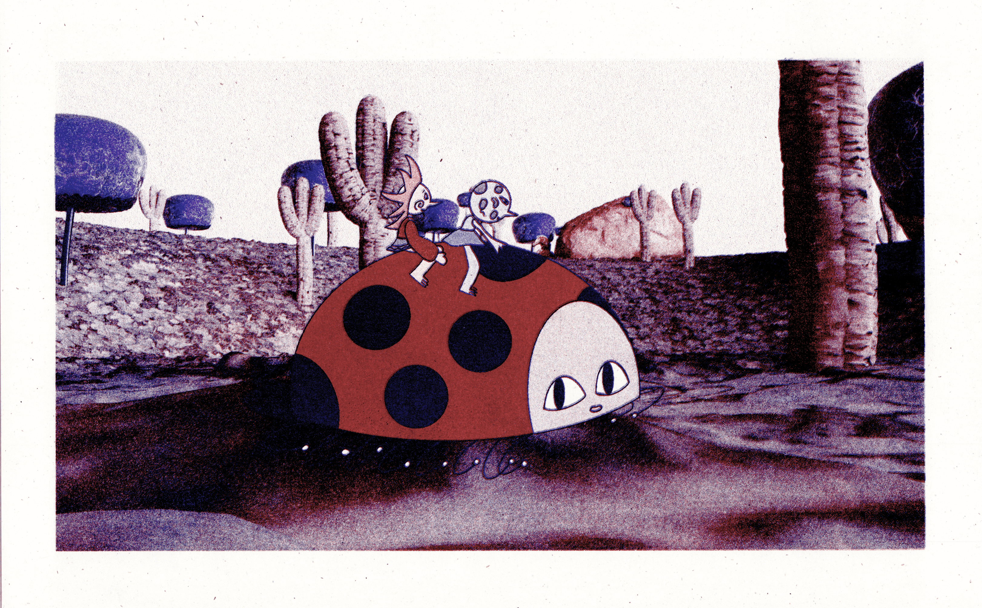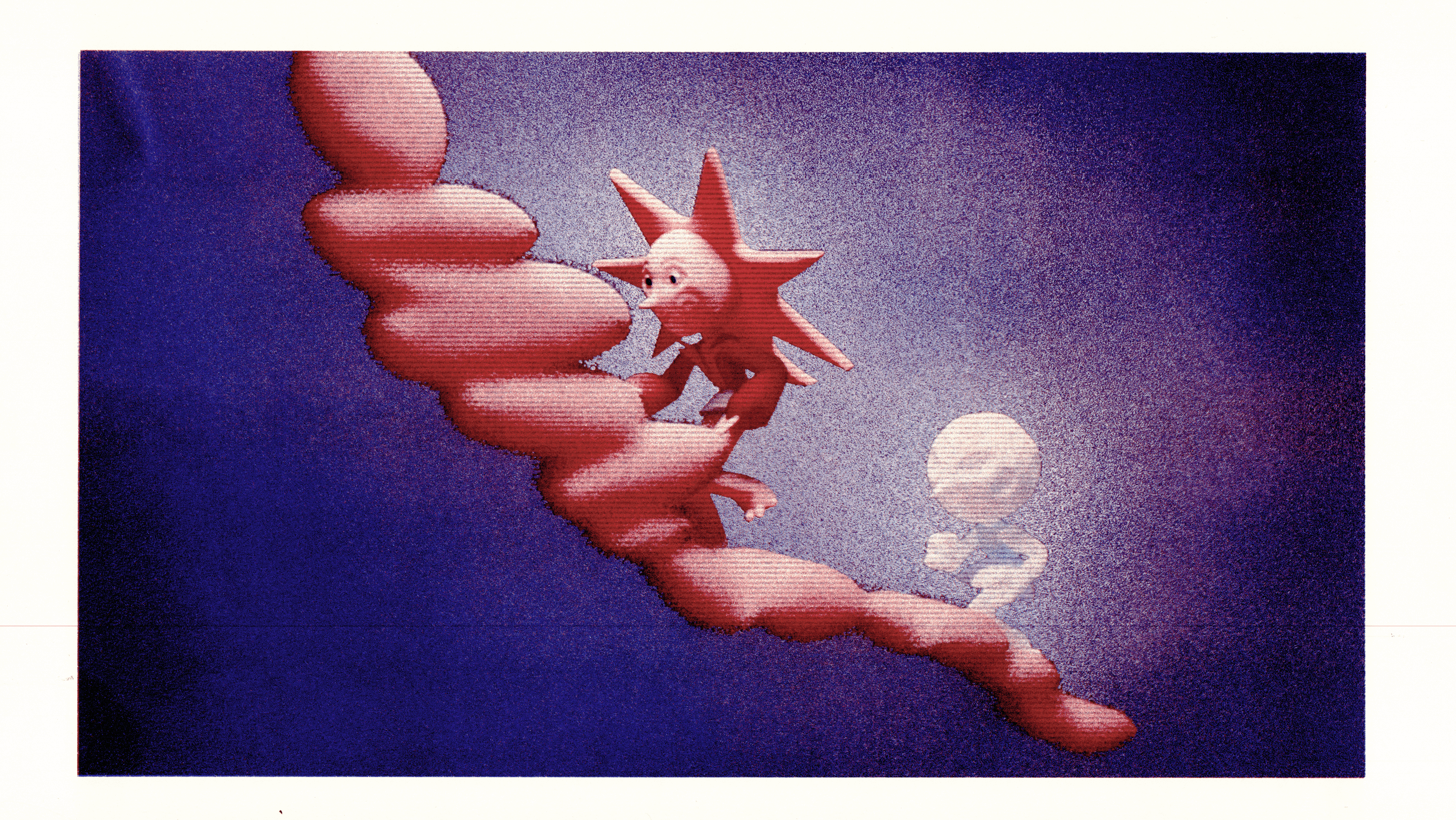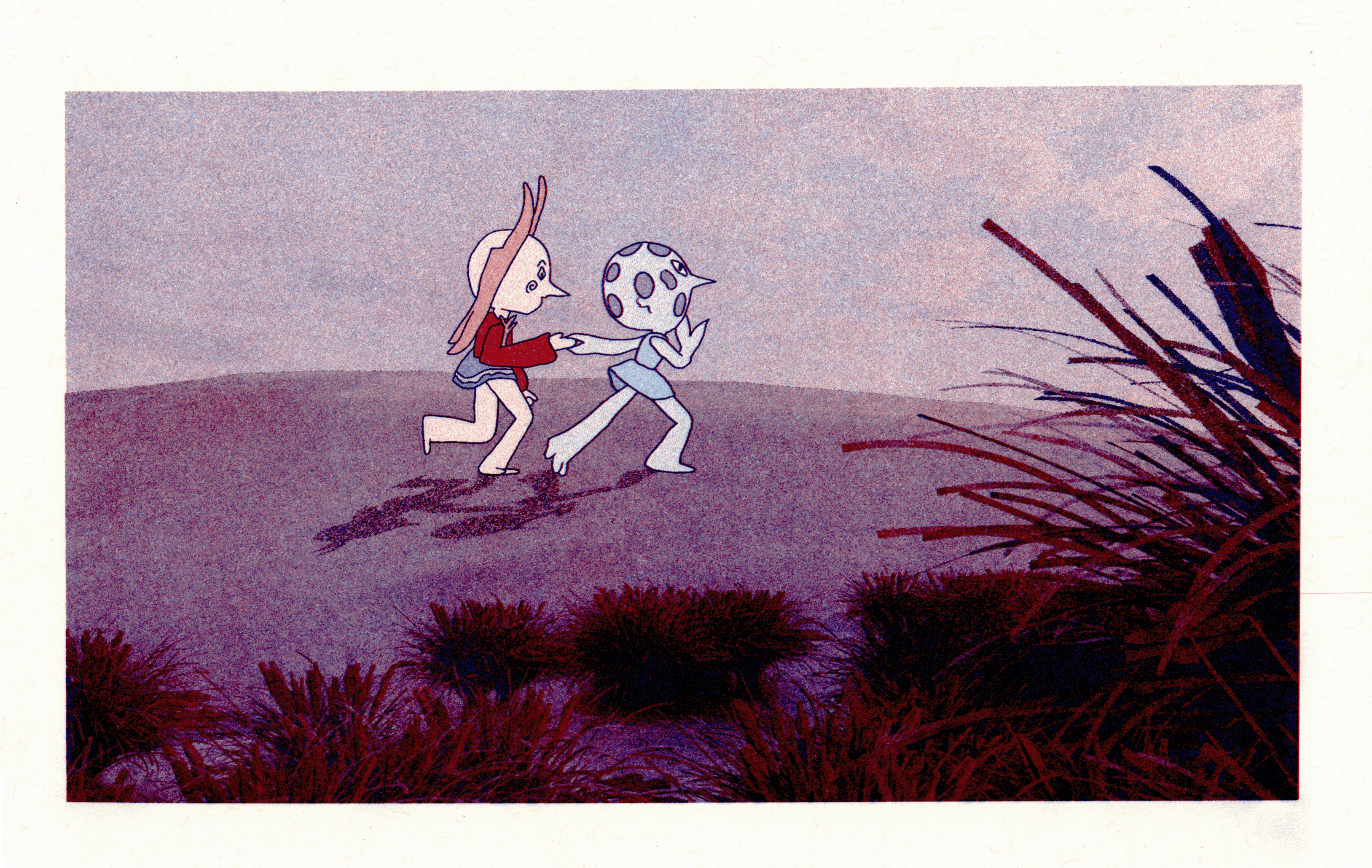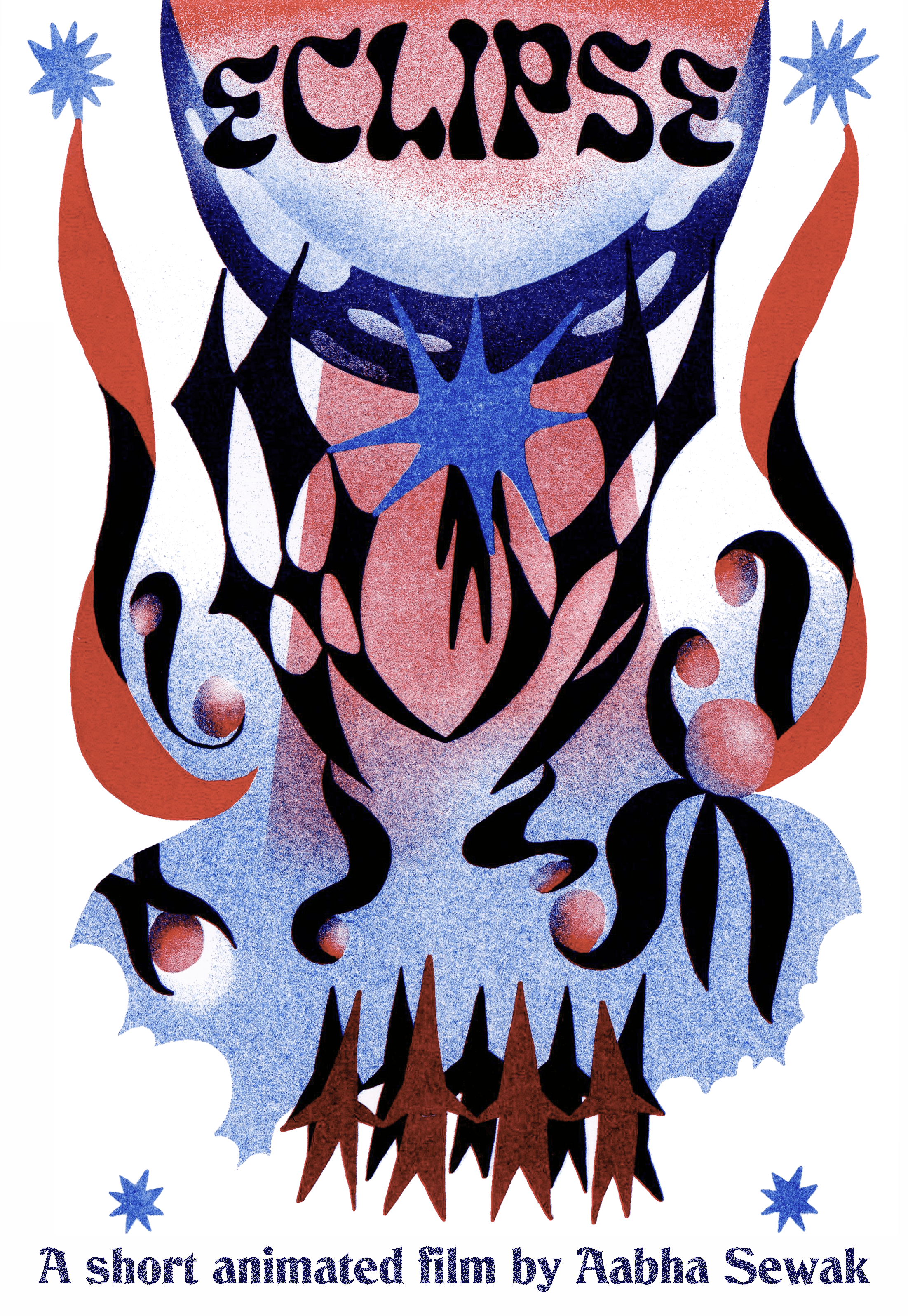 My mixed-media thesis film titled "Eclipse" features the Sun, who oversleeps and is late for the eclipse. She is accompanied by the Moon on her undulating journey to reach her final destination. The stability of their world hangs in balance as they glitch due to the delay in cosmic events. This open-ended animation asks: will the eclipse ever happen?